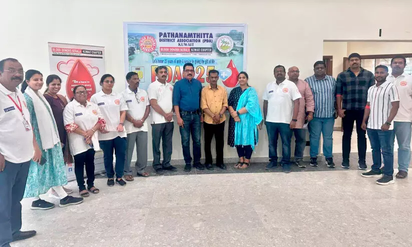 കുവൈത്ത് സിറ്റി: പത്തനംതിട്ട ജില്ല അസോസിയേഷൻ കുവൈത്ത് ബ്ലഡ് ഡൊണേർസ് കേരള കുവൈത്ത് ചാപ്റ്ററിന്റെ സഹകരണത്തോടെ രക്തദാന ക്യാമ്പ് സംഘടിപ്പിച്ചു. അദാൻ ബ്ലഡ് ട്രാൻസ്ഫ്യൂഷൻ സെന്ററിൽ ക്യാമ്പ് അസോസിയേഷൻ രക്ഷാധികാരി ഗീതാകൃഷ്ണൻ ഉദ്ഘാടനം ചെയ്തു . യോഗത്തിൽ സംഘടന വൈസ് പ്രസിഡന്റ് തോമസ് ജോൺ അടൂർ അധ്യക്ഷതവഹിച്ചു.