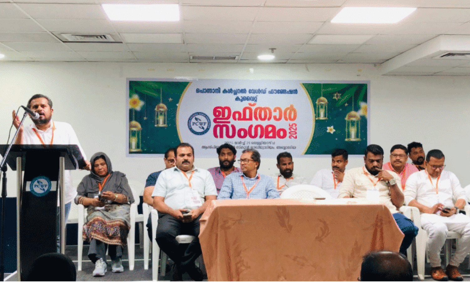 പി.സി.ഡബ്ല്യു.എഫ് സ്വാശ്രയ ചെയർമാനും ഗ്ലോബൽ വൈസ് പ്രസിഡന്റുമായ ഡോ.അബ്ദുൽ റഹ്മാൻ കുട്ടി റമദാൻ സന്ദേശം കൈമാറി. മലപ്പുറം ജില്ല അസോസിയേഷൻ കുവൈത്ത് പ്രസിഡന്റ് അഡ്വ. മുഹമ്മദ് ബഷീർ, പി.സി.ഡബ്ല്യു.എഫ് കുവൈത്ത് വനിത ഘടകം പ്രസിഡന്റ് റുഖിയ ബീവി എന്നിവർ ആശംസകൾ നേർന്നു. പി.വി. റഹീം പ്രാർഥന നടത്തി. ജോ.കൺവീനർ മൂസ ബാവ സ്വാഗതവും പ്രോഗ്രാം കൺവീനർ എം.വി. മുജീബ് നന്ദിയും പറഞ്ഞു.