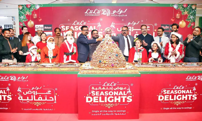 ലുലു ഹൈപ്പർമാർക്കറ്റിൽ ‘സീസണൽ ഡിലൈറ്റ്സ്’ ആഘോഷഭാഗമായി കേക്ക് മുറിക്കുന്നു