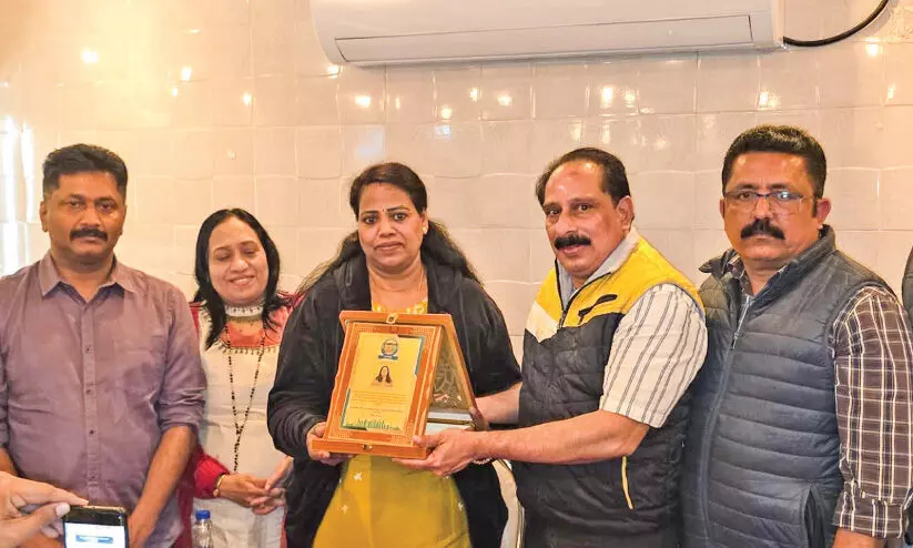 യാത്രയയപ്പ് ചടങ്ങിൽ സുനിത രവിക്ക് അജ്പാകിന്റെ ഉപഹാരം കൈമാറുന്നു