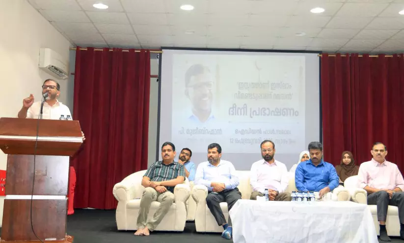 ഐ.എം.ഐ സലാല, ഐഡിയൽ ഹാളിൽ സംഘടിപ്പിച്ച പരിപാടിയിൽ പി. മുജീബു റഹ്മാൻ സംസാരിക്കുന്നു