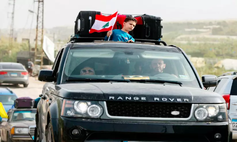 ലബനാനിൽ വെടിനിർത്തിയതോടെ സ്വന്തം താമസ സ്ഥലത്തേക്ക് കുടുംബത്തോടൊപ്പം മടങ്ങുന്ന കുട്ടി