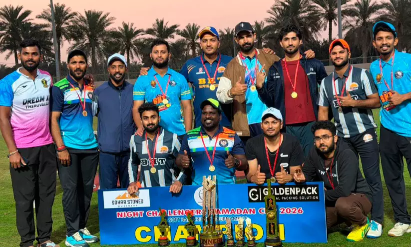 നൈറ്റ് ചലഞ്ചേഴ്സ് ക്രിക്കറ്റ് ക്ലബ് സംഘടിപ്പിച്ച റമദാൻ കപ്പിൽ വിജയികളായ എസ്.ഐ.ജി സി.സി സുഹാർ ടീം