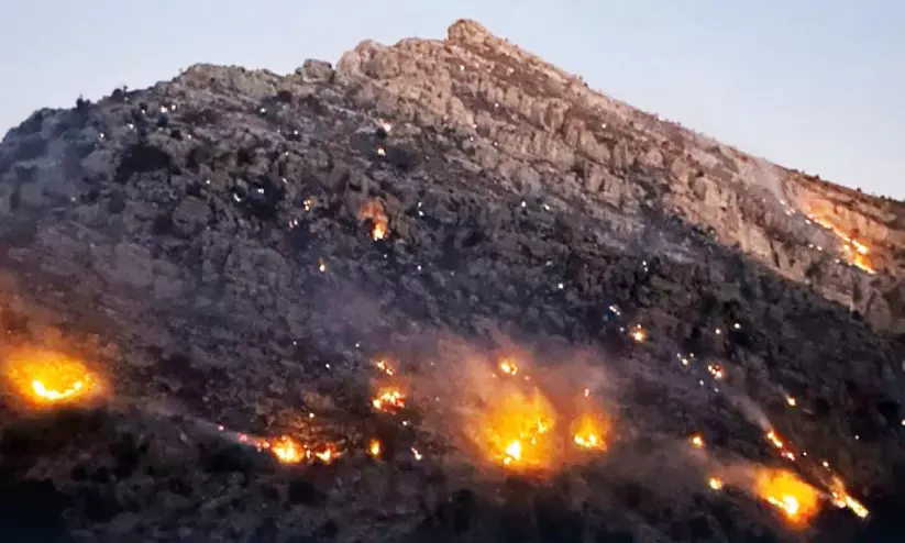 ദാഖിലിയ ഗവർണറേറ്റിൽ റാസൽ ഹർഖ് പർവത മേഖലയിൽ തീ പടർന്നപ്പോൾ