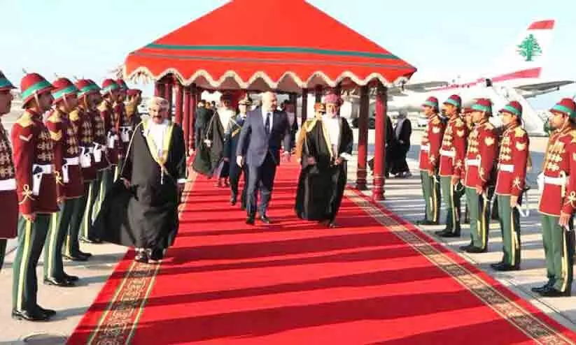 മസ്കത്തിലെത്തിയ ലബനീസ് പ്രസിഡന്റ് ജോസഫ് ഔണിനെ സുൽത്താൻ ഹൈതം ബിൻ