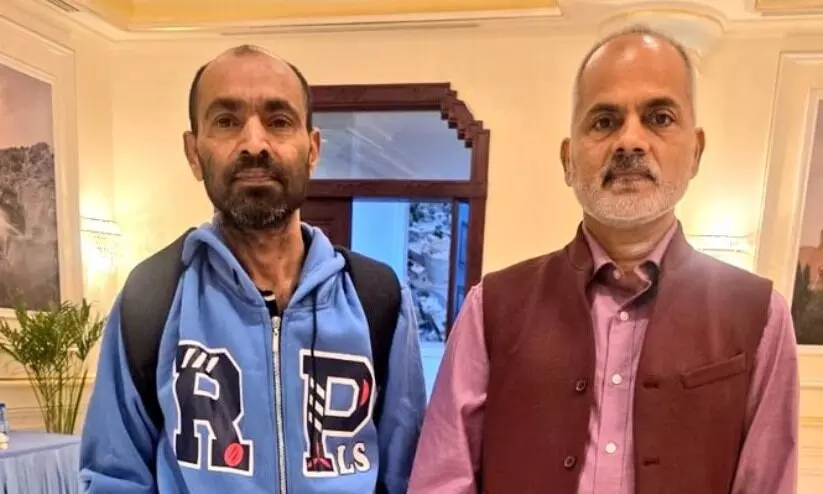 മോചിതനായ അനിൽ കുമാർ രവീന്ദ്രൻ ഇന്ത്യൻ അംബാസഡർ ജി.വി. ശ്രീനിവാസിനൊപ്പം