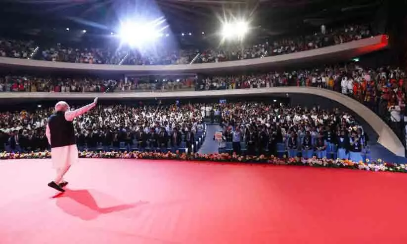 ഇവിടെ ഇഷ്ടംപോലെ മലയാളികളുണ്ടെന്നാണ് ഞാൻ മനസ്സിലാക്കുന്നതെന്ന് പറഞ്ഞായിരുന്നു ഹിന്ദിയിൽ മോദി പ്രസംഗം ആരംഭിച്ചത്. തുടർന്ന് ‘സുഖമാണോ?’ എന്ന് മലയാളത്തിൽ സദസ്സിനോട് ആരാഞ്ഞതോടെ സദസ്സിൽനിന്ന് ആരവവും നിറഞ്ഞ കൈയടിയും. മലയാളികൾ മാത്രമല്ല തമിഴരും തെലുങ്കരും കന്നഡിഗരും നിരവധി ഗുജറാത്തികളുമടക്കം ഇവിടെയുണ്ട്. മിനി ഇന്ത്യയെയാണ് ഞാൻ ഇവിടെ കാണുന്നതെന്നും പ്രധാനമന്ത്രി പറഞ്ഞു.