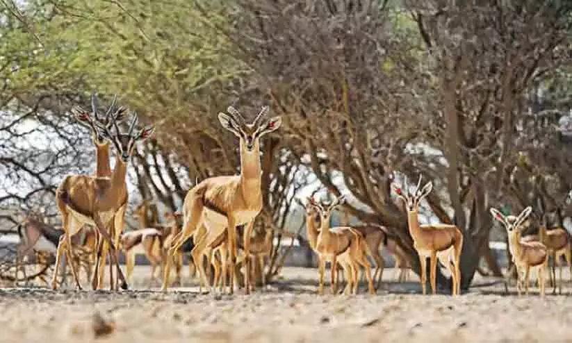 ഒമാനിലെ മരുപ്രദേശങ്ങളിൽ കാണപ്പെടുന്ന അറേബ്യൻ സാൻഡ് ഗസല്ലെകൾ