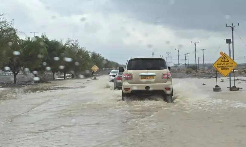 ശനിയാഴ്ച പെയ്ത കനത്ത മഴയിൽ റുസ്താഖിൽ റോഡിൽ വെള്ളം കയറിയപ്പോൾ