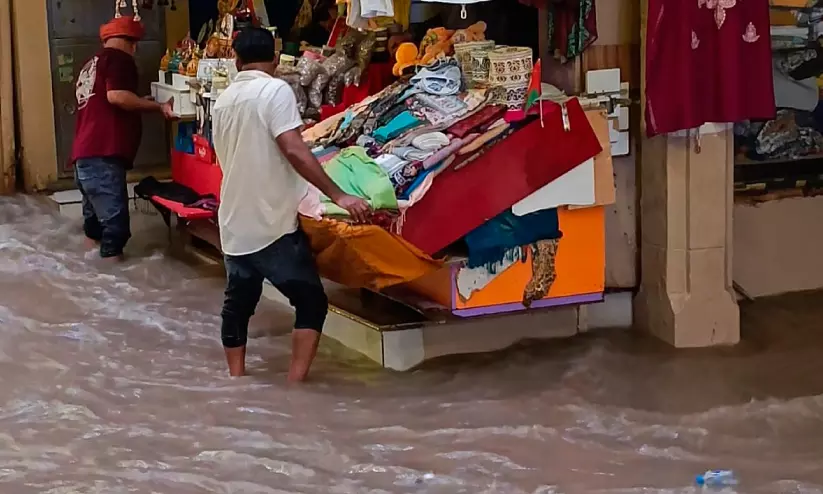 മത്ര സൂഖിൽ ബുധനാഴ്ച വൈകീട്ട് വെള്ളക്കെട്ടുയർന്നപ്പോൾ പ്രയാസത്തിലായ കച്ചവടക്കാർ