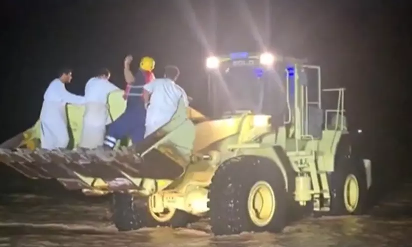 മസ്കത്ത്: കനത്ത മഴയും വെള്ളപ്പൊക്കവും കെടുതിയും തുടരുന്ന ഒമാനിൽ രണ്ടിടത്ത് വാദിയിൽ വെള്ളത്തിന്റെ കുത്തൊഴുക്കിൽപെട്ട് വാഹനത്തിൽ കുടുങ്ങിയ അഞ്ചുപേരെ രക്ഷപ്പെടുത്തി. മസ്കത്ത് ഗവർണറേറ്റിലെ ബൗഷറിലും ദാഹിറ ഗവർണറേറ്റിലെ ദാങ്കിലും തിങ്കളാഴ്ച രാത്രിയാണ് അപകടം. ബൗഷറിൽ വാദിയിൽ കുടുങ്ങിയ വാഹനത്തിൽ രണ്ടുപേരാണുണ്ടായിരുന്നത്.
