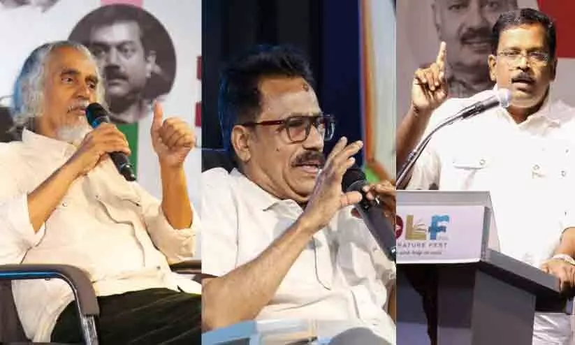 ഡി.എൽ.എഫ് ലിറ്ററേച്ചർ ഫെസ്റ്റിലെ വിവിധ സെഷനുകളിൽ സാംസ്കാരിക പ്രവർത്തകനും എഴുത്തുകാരനുമായ കെ.ഇ.എൻ. കുഞ്ഞഹമ്മദ്, കവിയും വിവർത്തകനുമായ കെ.ടി. സൂപ്പി, എഴുത്തുകാരനും സാഹിത്യാധ്യാപകനുമായ ഡോ. അശോക് ഡിക്രൂസ് എന്നിവർ സംസാരിക്കുന്നു