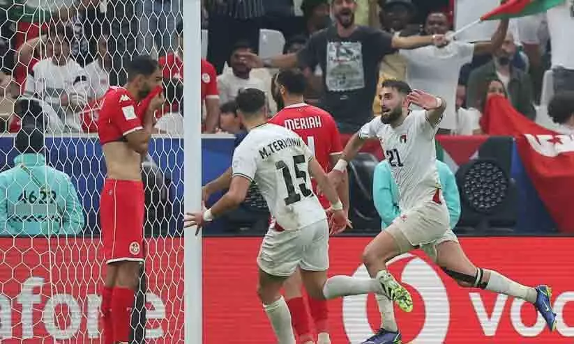 തുനീഷ്യക്കെതിരെ ഗോൾ നേടിയ ഫലസ്തീൻ താരങ്ങളുടെ ആഹ്ലാദം