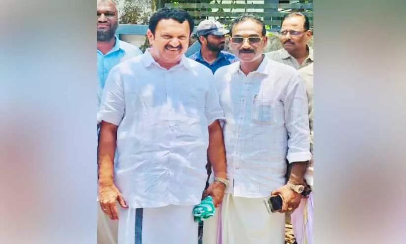 ഐ.സി.സി പ്രസിഡന്റ് എ.പി. മണികണ്ഠൻ തൃശൂർ മണ്ഡലം സ്ഥാനാർഥി കെ. മുരളീധരന്റെ പ്രചാരണത്തിനിടെ