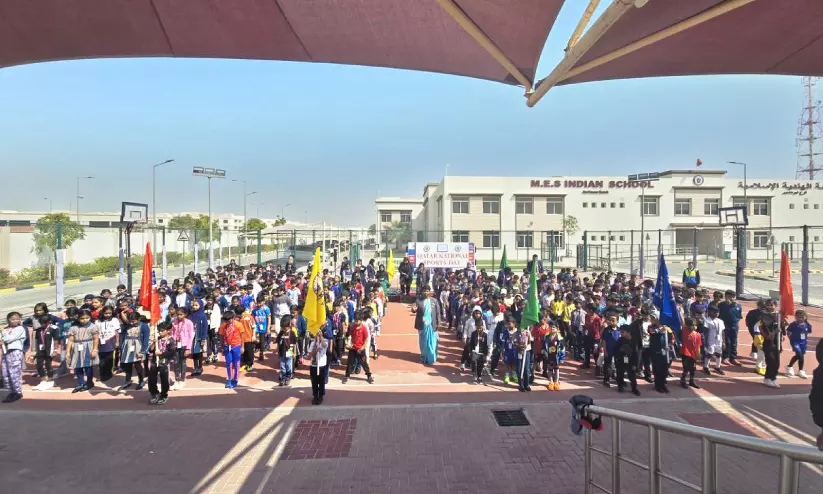 കായികദിന പരിപാടികളോടനുബന്ധിച്ച് എം.ഇ.എസ് ഇന്ത്യൻ സ്കൂളിലെ വിദ്യാർഥികൾ അണിനിരന്ന മാർച്ച് പാസ്റ്റ്
