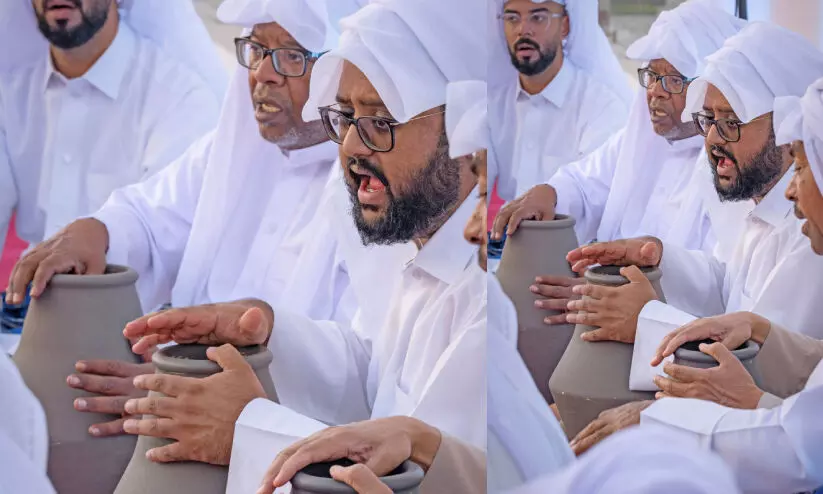 ദേശീയ ദിനാഘോഷങ്ങളുടെ ഭാഗമായി ദർബ് അൽസാഇയിൽ നടക്കുന്ന കലാപരിപാടിയിൽ പാരമ്പര്യ അറബ് ഗാനം ആലപിക്കുന്ന കലാകാരന്മാർ