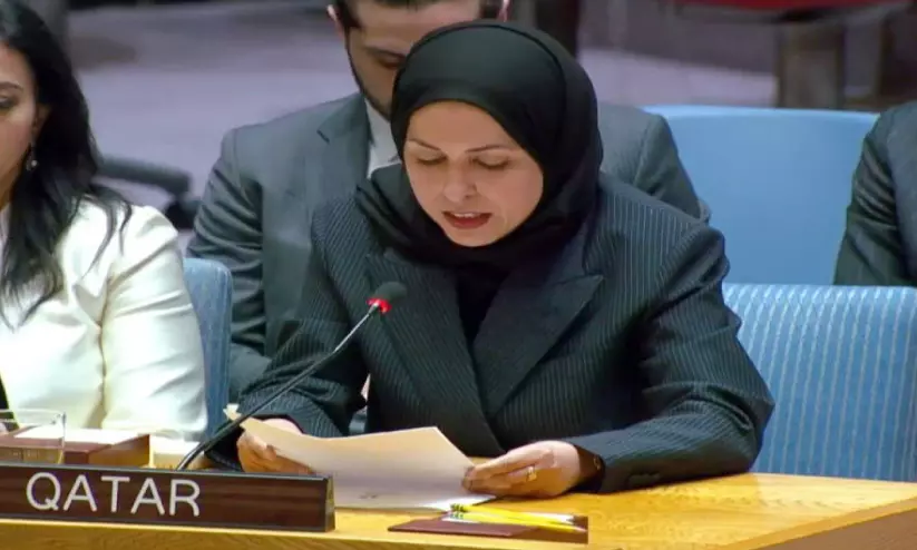 യു.എൻ ആസ്ഥാനത്ത് ചേർന്ന സുരക്ഷ കൗൺസിലിൽ ഖത്തറിന്റെ സ്ഥിരം പ്രതിനിധി ശൈഖ ആലിയ അഹമ്മദ്