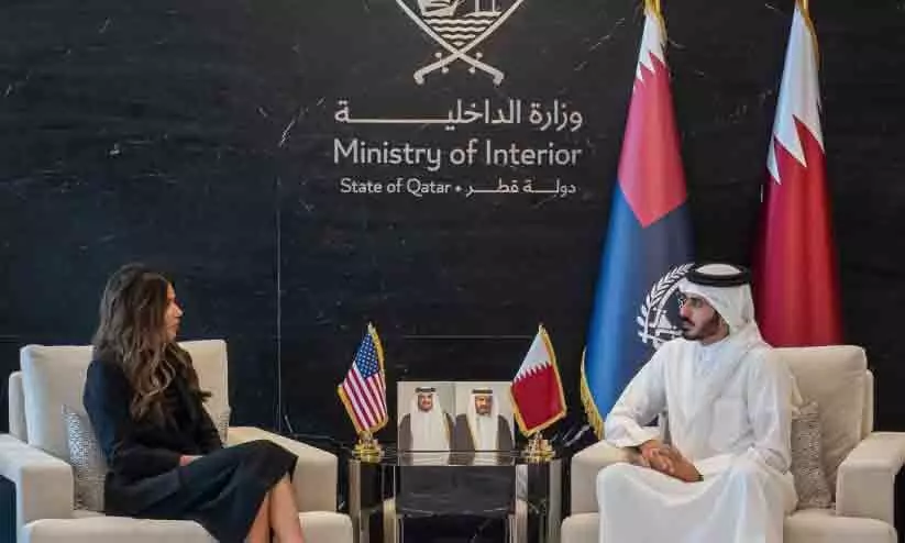 ദോഹ: ഖത്തർ -യു.എസ് സുരക്ഷാ സഹകരണം ശക്തിപ്പെടുത്തി ഖത്തർ ആഭ്യന്തര മന്ത്രിയും ആഭ്യന്തര സുരക്ഷാ സേനയായ ലഖ്വിയയുടെ കമാൻഡറുമായ ശൈഖ് ഖലീഫ ബിൻ ഹമദ് ബിൻ ഖലീഫ ആൽഥാനി, യു.എസ് ആഭ്യന്തര സുരക്ഷാ വകുപ്പ് സെക്രട്ടറി ക്രിസ്റ്റി നോമുമായി കൂടിക്കാഴ്ച നടത്തി. സുരക്ഷ നിലനിർത്തുന്നതിനും സ്ഥിരത പ്രോത്സാഹിപ്പിക്കുന്നതിനും സംയുക്ത ശ്രമങ്ങളെ പിന്തുണയ്ക്കുന്ന രീതിയിൽ സുരക്ഷാ മേഖലയിലെ ഉഭയകക്ഷി സഹകരണം വർധിപ്പിക്കുന്നതിനും വൈദഗ്ധ്യം കൈമാറുന്നതിനുമുള്ള വഴികൾ ഇരുവരും അവലോകനം ചെയ്തു. പരസ്പര താൽപര്യമുള്ള മറ്റു വിഷയങ്ങളും പങ്കുവെച്ചു.