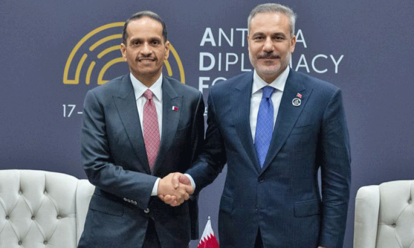 ദോഹ: തുർക്കിയയിൽ നടന്ന അഞ്ചാമത് അൻതാല്യ ഡിപ്ലോമസി ഫോറത്തിന്റെ ഭാഗമായി ഖത്തർ പ്രധാനമന്ത്രിയും വിദേശകാര്യ മന്ത്രിയുമായ ശൈഖ് മുഹമ്മദ് ബിൻ അബ്ദുറഹ്മാൻ ബിൻ ജാസിം ആൽഥാനി, തുർക്കിയ വിദേശകാര്യ മന്ത്രി ഹകാൻ ഫിദാനുമായി കൂടിക്കാഴ്ച നടത്തി. ഇരുരാജ്യങ്ങളും തമ്മിലുള്ള ഉഭയകക്ഷി സഹകരണം കൂടുതൽ ശക്തിപ്പെടുത്തുന്നതിനെക്കുറിച്ചും വികസിപ്പിക്കുന്നതിനെക്കുറിച്ചും നേതാക്കൾ ചർച്ച ചെയ്തു.