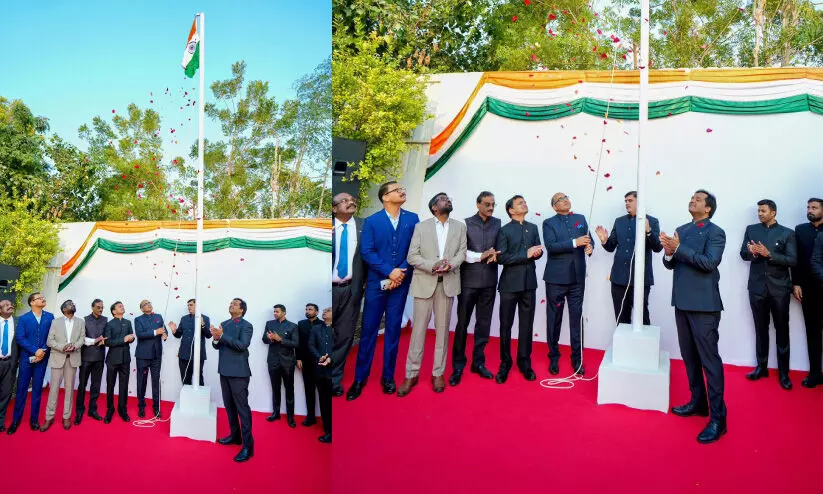 ഇന്ത്യൻ എംബസിയുടെ നേതൃത്വത്തിൽ ഐ.സി.സിയിൽ നടന്ന റിപ്പബ്ലിക് ദിനാഘോഷ പരിപാടിയിൽ ഇന്ത്യൻ അംബാസഡർ വിപുൽ പതാക ഉയർത്തുന്നു
