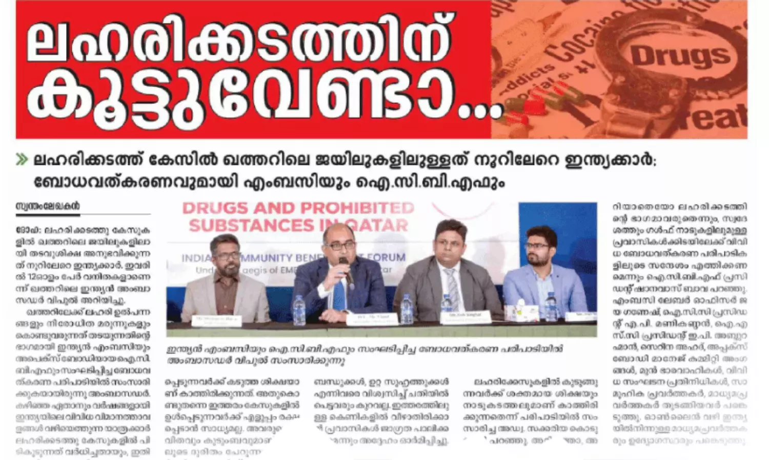 ദോഹ: ലഹരി ഉപയോഗവും, ലഹരിക്കടത്തും ഗുരുതര കുറ്റകൃത്യമായി കണക്കാക്കുന്ന രാജ്യമാണ് ഖത്തർ. നിയമലംഘനം നടത്തുന്നവരെ കാത്തിരിക്കുന്നത് കഠിന ശിക്ഷയും കനത്ത പിഴയും. ചതിയിലകപ്പെട്ട് ലഹരിക്കടത്തിന്റെ ഭാഗമായാലും ശിക്ഷയിൽ ഇളവുകളൊന്നും ലഭിക്കില്ലെന്ന് ഖത്തറിലെ നിയമ വിദഗ്ധരും സാമൂഹിക പ്രവർത്തകരും സാക്ഷ്യപ്പെടുത്തുന്നു. കുടുംബത്തെ കരകയറ്റാനുള്ള സ്വപ്നവുമായി ഗൾഫിലേക്ക് വിമാനം കയറുേമ്പാൾ, തങ്ങളുടെ ലഗേജിലോ മറ്റോ ഒരു തരത്തിലുള്ള ലഹരി വസ്തുക്കളോ, നിരോധിത മരുന്നുകളോ ഇല്ലെന്ന് ഉറപ്പുവരുത്തേണ്ടത് യാത്രചെയ്യുന്നവരുടെ മാത്രം ഉത്തരവാദിത്തമാണ്. കഞ്ചാവ്, ഹഷീഷ്, ഹെറോയിൻ, എം.ഡി.എം.എ മുതൽ 29 ലഹരി വസ്തുക്കളോ, ഇവ അടങ്ങിയ പദാർഥങ്ങളോ ഖത്തറിലേക്ക് കടത്തരുതെന്ന് കർശന നിർദേശമുണ്ട്. ഇവക്കൊപ്പം, ന്യൂറോ സംബന്ധമായ വിവിധ ചികിത്സകൾക്കായി ഉപയോഗിക്കുന്ന മരുന്നുകളും വിലക്കപ്പെട്ടവയുടെ പട്ടികയിലുണ്ട്. നിരോധിത വിഭാഗത്തിലുള്ള സൈകോ ആക്ടിവ്, സൈകോട്രോഫിക് മെഡിസിനുകളുടെ വിവരങ്ങൾ ഖത്തർ പൊതുജനാരോഗ്യമന്ത്രാലയം വെബ്സൈറ്റിൽ പ്രസിദ്ധീകരിച്ചിട്ടുണ്ട്.