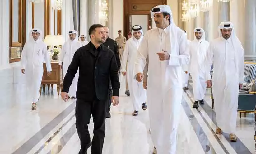 ദോഹ: മേഖലയിലെ വർധിച്ചുവരുന്ന സംഘർഷങ്ങളുടെ പശ്ചാത്തലത്തിൽ, പ്രാദേശികവും അന്തർദേശീയവുമായ പുതിയ സംഭവവികാസങ്ങൾ പങ്കുവെച്ച് ഖത്തർ അമീർ ശൈഖ് തമീം ബിൻ ഹമദ് ആൽഥാനിയും യുക്രെയ്ൻ പ്രസിഡന്റ് വ്ലാദിമിർ സെലൻസ്കിയും കൂടിക്കാഴ്ച നടത്തി. ഖത്തറിനിനും മേഖലയിലെ മറ്റ് രാജ്യങ്ങൾക്കും നേരെ ഇറാൻ തുടരുന്ന കടന്നുകയറ്റവും യുക്രെയ്ൻ യുദ്ധവും ഉൾപ്പെടെയുള്ള വിഷയങ്ങൾ ചർച്ചയായി.