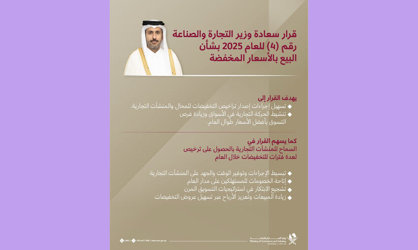 ദോഹ: ചില്ലറ വിൽപന മേഖലയിൽ ഉത്തേജനം പകരുന്ന പ്രഖ്യാപനവുമായി ഖത്തർ വാണിജ്യ, വ്യവസായ മന്ത്രാലയം. വ്യാപാര സ്ഥാപനങ്ങൾക്ക് വർഷത്തിൽ ഒന്നിൽ കൂടുതൽ തവണ ഡിസ്കൗണ്ട് വിൽപ അനുവദിച്ചുകൊണ്ട് നിയമഭേദഗതി വരുത്തിയതായി മന്ത്രാലയം അറിയിച്ചു.