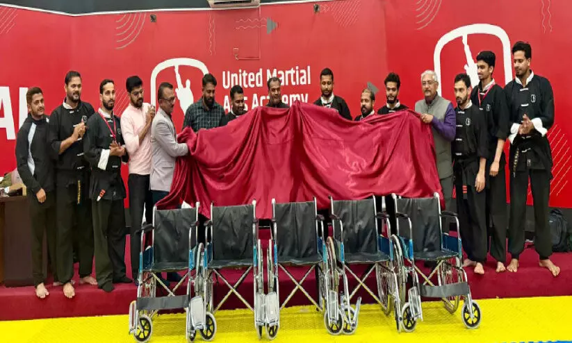 ദോഹ: യുണൈറ്റഡ് മാർഷ്യൽ ആർട്സ് അക്കാദമി ഇന്റർനാഷണൽ ജീവകാരുണ്യ പ്രവർത്തനങ്ങളുടെ ഭാഗമായി വീൽചെയർ സേവനം ആരംഭിച്ചു. വുകൈർ ക്ലബ്ബിൽ നടന്ന ചടങ്ങിൽ ഐ.സി.സി ജനറൽ സെക്രട്ടറി എബ്രഹാം കെ. ജോസഫ്, ഐ.സി.ബി.എഫ് വൈസ് പ്രസിഡന്റ് റഷീദ് അഹമ്മദ്, യു.എം.എ.ഐ ഖത്തർ ഡയറക്ടർ ഷിഹാൻ നൗഷാദ് കെ. മണ്ണോളി തുടങ്ങിയവർ ചേർന്ന് വീൽ ചെയർ സമർപ്പിച്ചു.