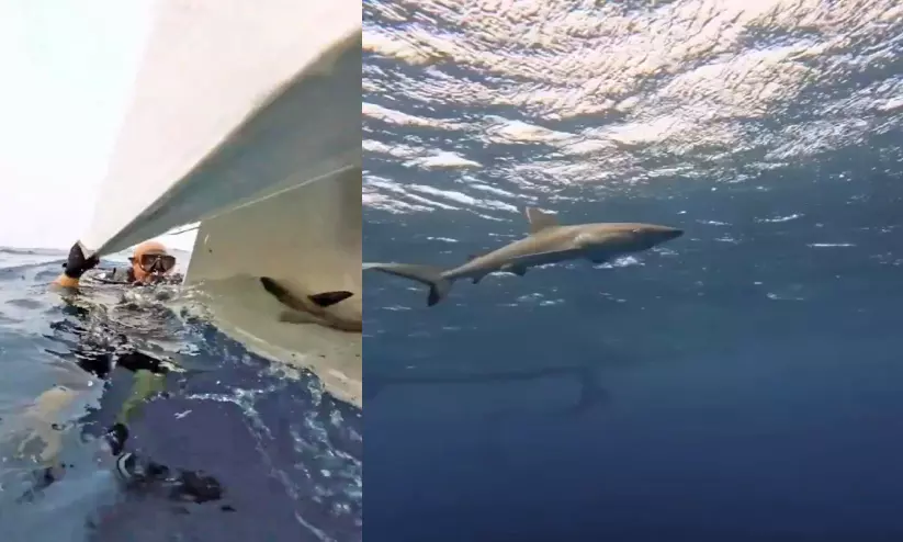 ജിദ്ദയിൽ ബോട്ട് ജെട്ടിയിൽ കുടുങ്ങിയ സ്രാവിനെ രക്ഷപ്പെടുത്തിയപ്പോൾ
