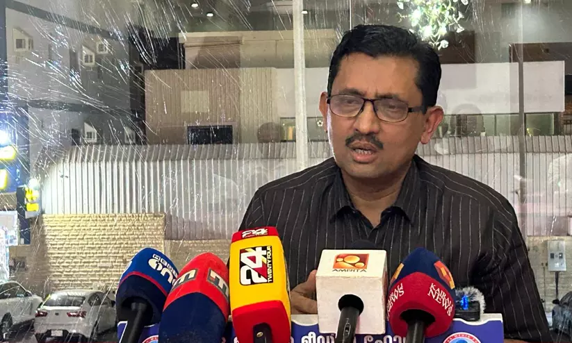 എ.എം അബ്ദുല്ലക്കുട്ടി ജിദ്ദയിൽ വാർത്തസമ്മേളനത്തിൽ സംസാരിക്കുന്നു