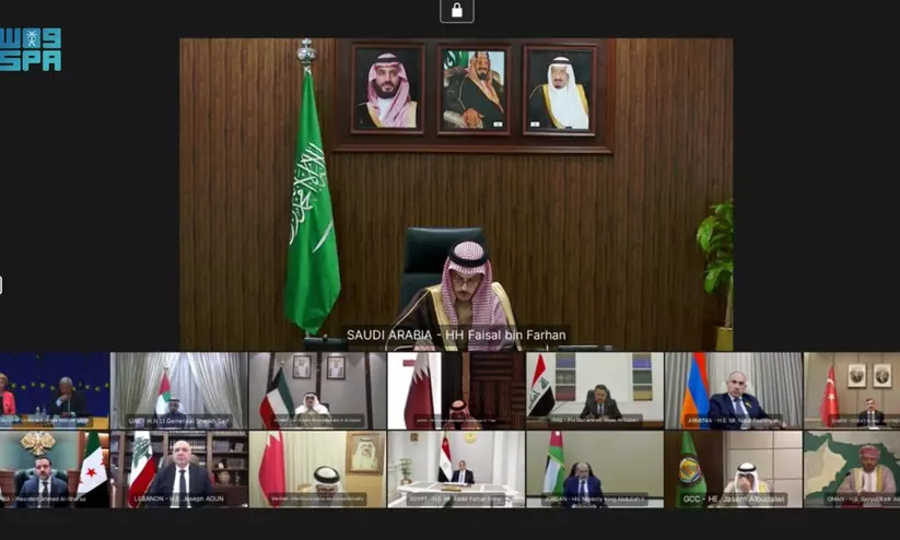 തിങ്കളാഴ്ച വീഡിയോ കോൺഫറൻസിങ് വഴി നടന്ന യോഗത്തിൽ ഗൾഫ് സഹകരണ കൗൺസിൽ (ജിസിസി) അംഗരാജ്യങ്ങൾ, ജോർദാൻ, ഈജിപ്ത്, ഇറാഖ്, സിറിയ, ലെബനൻ, തുർക്കി, അർമേനിയ എന്നീ രാജ്യങ്ങളിലെ നേതാക്കളും യൂറോപ്യൻ കൗൺസിൽ പ്രസിഡൻറും യൂറോപ്യൻ കമീഷൻ പ്രസിഡൻറും പങ്കെടുത്തു.