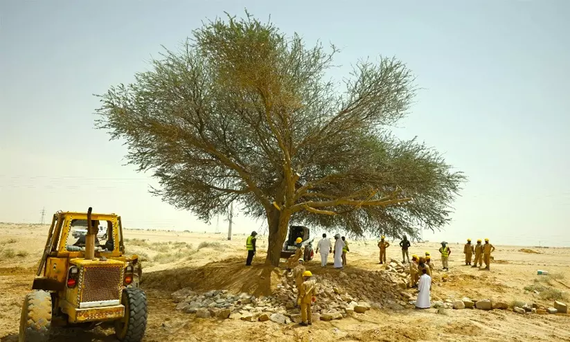 റിയാദ്: ശക്തമായ കാറ്റിലും മഴയിലും വേരോടെ പിഴുതെറിയപ്പെട്ട അൽ ദവാദ്മി ഗവർണറേറ്റിെൻറ പ്രവേശന കവാടത്തിലെ പുരാതനമായ 'തൽഹ്' (അക്കേഷ്യ) വൃക്ഷം വിജയകരമായി പുനഃസ്ഥാപിച്ചു. നാഷണൽ സെന്റർ ഫോർ വെജിറ്റേഷൻ കവർ ഡെവലപ്മെന്റ് ആൻഡ് കോംബാറ്റിംഗ് ഡിസേർട്ടിഫിക്കേഷൻ, വിവിധ സർക്കാർ-പ്രാദേശിക ഏജൻസികളുമായി സഹകരിച്ചാണ് ഈ സങ്കീർണ്ണമായ ദൗത്യം പൂർത്തിയാക്കിയത്.