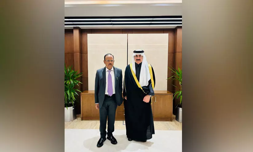 ഇന്ത്യൻ ദേശീയ സുരക്ഷ ഉപദേഷ്ടാവ് അജിത് ഡോവൽ, സൗദി ദേശീയ സുരക്ഷ ഉപദേഷ്ടാവും കാബിനറ്റ് അംഗവുമായ ഡോ. മുസാദ് ബിൻ മുഹമ്മദ് അൽ ഐബാനും കൂടിക്കാഴ്ച നടത്തിയപ്പോൾ
