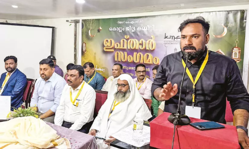 കൊല്ലം ജില്ലാ കെ.എം.സി.സി ‘ഗ്രാൻഡ് ഇഫ്താർ’ സംഗമത്തിൽ മലപ്പുറം ബ്ലോക്ക് പഞ്ചായത്ത് വൈസ് പ്രസിഡൻറ് ഷൗക്കത്ത് കടമ്പോട്ട് സംസാരിക്കുന്നു