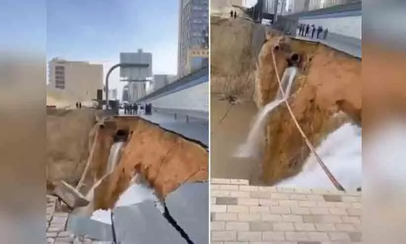 റിയാദ് റീജനിലെ ഇൻഫ്രാസ്ട്രക്ചർ പ്രോജക്ട് സെൻറർ നൽകുന്ന വിവരമനുസരിച്ച്, ഇക്കഴിഞ്ഞ വെള്ളിയാഴ്ച ഉച്ചക്ക് 2.20ഓടെയാണ് സംഭവം. സമീപത്തെ ഒരു കെട്ടിട നിർമാണ സ്ഥലത്ത് നടന്ന ഖനന ജോലികളാണ് അപകടത്തിന് കാരണമായത്. നിർമാണ പ്രവർത്തനങ്ങൾക്കിടെ റോഡിന് അടിയിലൂടെ പോകുന്ന പ്രധാന പൈപ്പ് ലൈനുകളിൽ ഒന്ന് തകരുകയും, പൈപ്പിലുണ്ടായിരുന്ന വെള്ളം വലിയ അളവിൽ റോഡിലേക്ക് കുതിച്ചെത്തുകയുമായിരുന്നു.