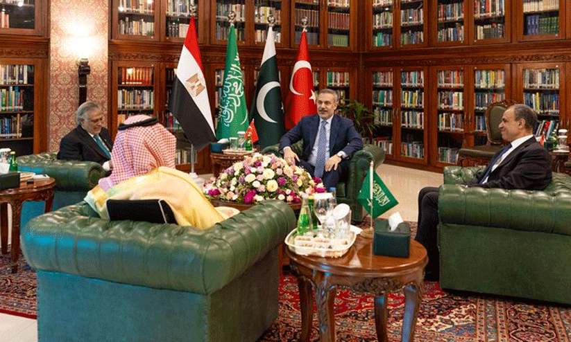 സൗദി വിദേശകാര്യ മന്ത്രി അമീർ ഫൈസൽ ബിൻ ഫർഹാൻ, പാകിസ്താൻ വിദേശകാര്യ മന്ത്രി ഇഷാഖ് ദാർ, തുർക്കിയ വിദേശകാര്യ മന്ത്രി ഹക്കാൻ ഫിദാൻ, ഈജിപ്ഷ്യൻ വിദേശകാര്യ മന്ത്രി ഡോ. ബദർ അബ്ദുലാത്തി എന്നിവർ ഇസ്ലാമാബാദിൽ നടത്തിയ യോഗത്തിൽ