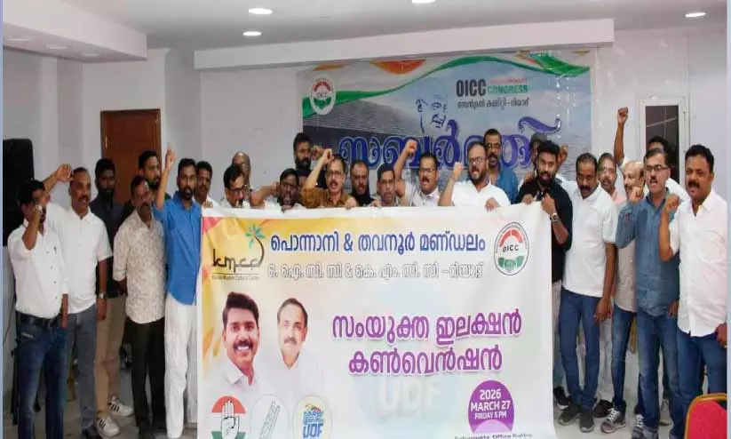 റിയാദ്: ഒ.ഐ.സി.സി പൊന്നാനി, തവനൂർ മണ്ഡലം കമ്മിറ്റികളും കെ.എം.സി.സി പൊന്നാനി മണ്ഡലം കമ്മിറ്റിയും ചേർന്ന് റിയാദിൽ സംയുക്ത തെരഞ്ഞെടുപ്പ് കൺവെൻഷൻ സംഘടിപ്പിച്ചു. ബത്ഹയിലെ സബർമതി ഹാളിൽ നടന്ന പരിപാടി ഒ.ഐ.സി.സി മലപ്പുറം ജില്ല പ്രസിഡൻറ് സിദ്ധിഖ് കല്ലുപറമ്പെൻറ അധ്യക്ഷതയിൽ കെ.എം.സി.സി പ്രസിഡൻറ് സി.പി. മുസ്തഫ ഉദ്ഘാടനം ചെയ്തു. ഒ.ഐ.സി.സി സെൻട്രൽ കമ്മിറ്റി പ്രസിഡൻറ് സലീം കളക്കര മുഖ്യപ്രഭാഷണം നടത്തി.