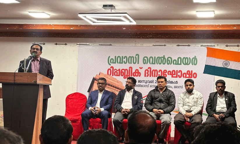 പ്രവാസി വെൽഫെയർ റിയാദ് ഘടകത്തിെൻറ റിപ്പബ്ലിക് ദിനാഘോഷ പരിപാടിയിൽ നാഷനൽ കമ്മിറ്റി പ്രസിഡൻറ് സാജു ജോർജ് സംസാരിക്കുന്നു
