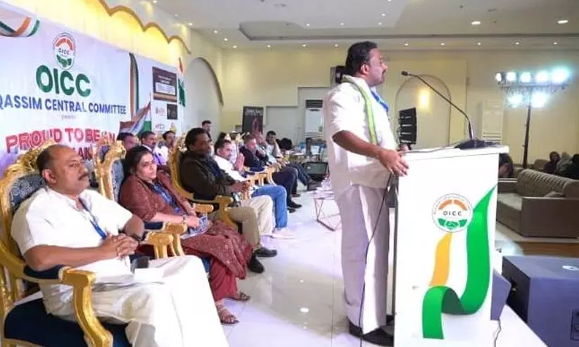 ഒ.ഐ.സി.സി അൽ ഖസീം സെൻട്രൽ കമ്മിറ്റി സംഘടിപ്പിച്ച ‘പ്രൗഡ് ടു ബി ആൻ ഇന്ത്യൻ 2026’ പരിപാടി കെ.പി.സി.സി ജനറൽ സെക്രട്ടറി അഡ്വ. ബി.ആർ.എം. ഷഫീർ ഉദ്ഘാടനം ചെയ്യുന്നു