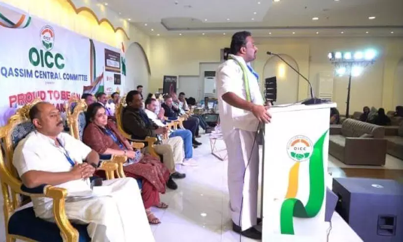 ഒ.ഐ.സി.സി അൽ ഖസീം സെൻട്രൽ കമ്മിറ്റി സംഘടിപ്പിച്ച ‘പ്രൗഡ് ടു ബി ആൻ ഇന്ത്യൻ 2026’ പരിപാടി കെ.പി.സി.സി ജനറൽ സെക്രട്ടറി അഡ്വ. ബി.ആർ.എം. ഷഫീർ ഉദ്ഘാടനം ചെയ്യുന്നു