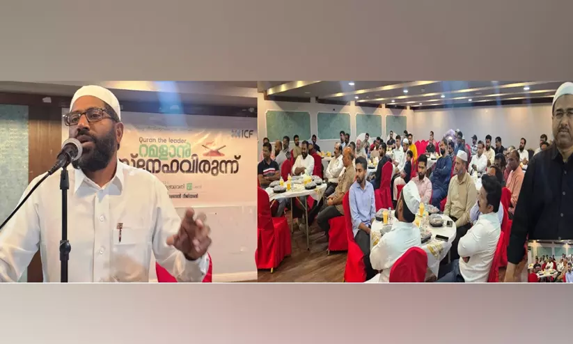 ചടങ്ങിൽ ജബ്ബാർ ആലപ്പുഴ അധ്യക്ഷത വഹിച്ചു. സഫയർ മുഹമ്മദ്, ബൈജു അഞ്ചൽ, അബ്ദു റഊഫ്, കെ.യു. ഷാനവാസ്, ശിഹാബ് മങ്ങാടൻ, റിയാസ് ബഷീർ എന്നിവർ സംബന്ധിച്ചു. ഷഹീർഷാ സ്വാഗതവും ജാഫർ കൊടിഞ്ഞി നന്ദിയും പറഞ്ഞു. ഐ.സി.എഫ്, സിറ്റി ഫ്ലവറുമായി സഹകരിച്ച് നടത്തുന്ന ഇഫ്താർ കിറ്റ് വിതരണത്തിെൻറ ഉദ്ഘാടനവും ചടങ്ങിൽ നടന്നു. ഐ.സി.എഫ് പ്രവർത്തകരും സിറ്റി ഫ്ളവർ സീനിയർ സ്റ്റോർ മാനേജർ ഹനീഫ കാപ്പാടും ചേർന്ന് പദ്ധതിക്ക് തുടക്കം കുറിച്ചു.