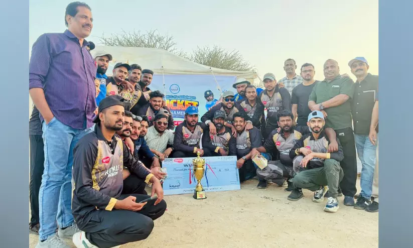 ദവാദ്മി കെ.എം.സി.സി ക്രിക്കറ്റ് ടൂർണമെൻറിൽ ജേതാക്കളായ റോയൽസ് ദവാദ്മി ടീം ട്രോഫിയുമായി