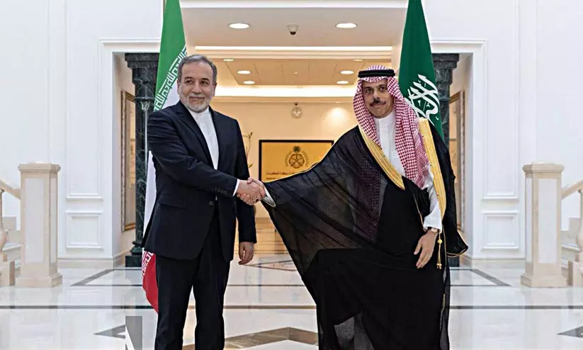 സൗദി വിദേശകാര്യ മന്ത്രി അമീർ ഫൈസൽ ബിൻ ഫർഹാൻ ബിൻ അബ്ദുള്ളയുമായി ഇറാൻ വിദേശകാര്യ മന്ത്രി അബ്ബാസ് അരാഗ്ചിയും (ഫയൽ ചിത്രം)