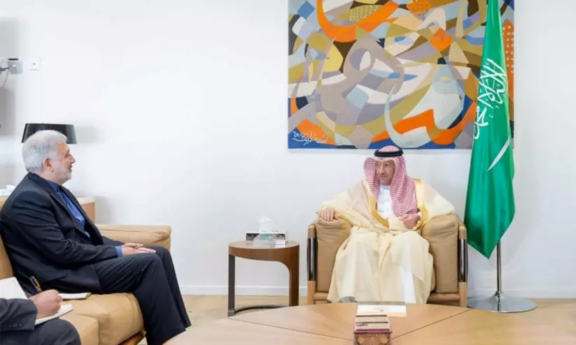 ഇറാൻ അംബാസഡർ അലി റെസ ഇനായത്തിയും സൗദി ഡെപ്യൂട്ടി വിദേശകാര്യ മന്ത്രി വലീദ് അൽഖുറൈജിയും കൂടിക്കാഴ്ച നടത്തിയപ്പോൾ