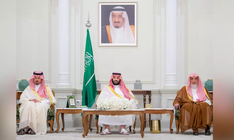 മദീനയിൽ പണ്ഡിതരെയും പൗരന്മാരെയും സൗദി കിരീടാവകാശി സ്വീകരിച്ചപ്പോൾ