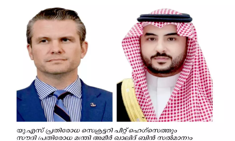 ജിദ്ദ: സൗദി പ്രതിരോധ മന്ത്രി അമീർ ഖാലിദ് ബിൻ സൽമാനും യു.എസ് പ്രതിരോധ സെക്രട്ടറി പീറ്റ് ഹെഗ്സെത്തും ചർച്ച നടത്തി. ഇരു രാജ്യങ്ങളും തമ്മിലുള്ള പ്രതിരോധ സഹകരണത്തെക്കുറിച്ചും പ്രാദേശിക സുരക്ഷയെക്കുറിച്ചുമാണ് തിങ്കളാഴ്ച ടെലിഫോണിൽ സംഭാഷണം നടത്തിയത്.