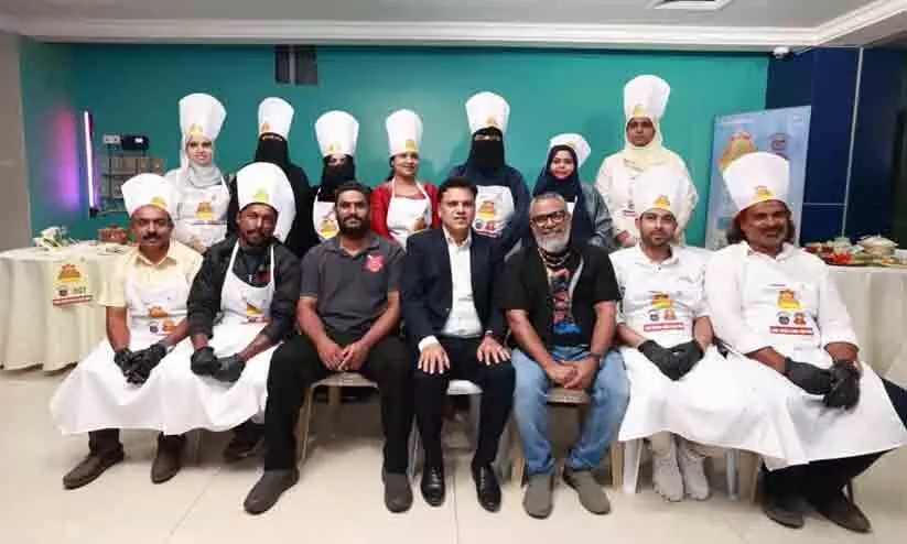 അബഹയിലെ സിറ്റി ഫ്ലവർ ഹൈപ്പർ മാർക്കറ്റിൽ നടന്ന ‘വിജയ് ദം ദം ബിരിയാണി’ റോഡ് ഷോയിലെ പാചകമത്സരത്തിൽ പങ്കെടുത്തവർ സംഘാടകർക്കൊപ്പം