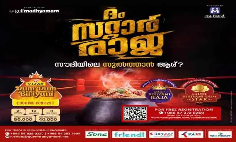 പ്രശസ്ത ഷെഫ് സുരേഷ് പിള്ള, മലബാറിന്റെ രുചിമഹാറാണി ആബിദ റഷീദ്, രാജ് കലേഷ് തുടങ്ങിയവർ പങ്കെടുക്കുന്ന ഫിനാലെയിൽ 40,000 റിയാൽ ക്യാഷ് പ്രൈസ് ഉൾപ്പെടെ ആകെ 50,000 റിയാലിന്റെ സമ്മാനങ്ങളാണ് വിജയികളെ കാത്തിരിക്കുന്നത്. മത്സര രജിസ്ട്രേഷന് http://www.madhyamam.com/dumdumbiriyani എന്ന ലിങ്കിലോ 057 372 8259 എന്ന നമ്പറിലോ ബന്ധപ്പെടാം.