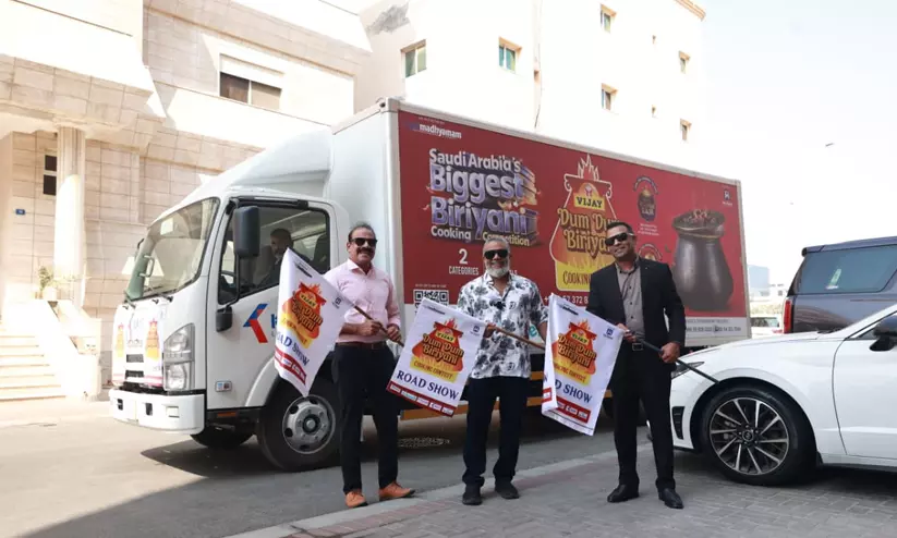 ജിദ്ദ: സൗദി അറേബ്യയിലെ പാചകപ്രേമികൾ കാത്തിരുന്ന ഗൾഫ് മാധ്യമം ‘വിജയ് ദം ദം ബിരിയാണി’ മത്സരത്തിന്റെ പ്രചാരണാർഥം സംഘടിപ്പിക്കുന്ന റോഡ് ഷോ വാഹന പര്യടനത്തിന് ജിദ്ദയിൽ ഉജ്ജ്വല തുടക്കം. പ്രശസ്ത അവതാരകനും ഫുഡ് വ്ളോഗറുമായ രാജ് കലേഷ് (കല്ലു), വിജയ് മസാല എം.ഡി ജോയ് മൂലൻ, കാഫ് ലോജിസ്റ്റിക്സ് സി.ഇ.ഒ ഫൈസൻ പൂന്തല എന്നിവർ ചേർന്നാണ് ജിദ്ദയിൽ റോഡ് ഷോ വാഹനത്തിന്റെ ഫ്ലാഗ് ഓഫ് നിർവഹിച്ചത്.