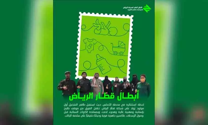 യാത്രക്കിടെ യുവതിക്ക് പ്രസവവേദന അനുഭവപ്പെട്ട ഉടൻ തന്നെ മെട്രോയിലെ ഓപറേറ്റിങ് സ്റ്റാഫ് വളരെ വേഗത്തിലും കൃത്യതയാർന്ന രീതിയിലും ഇടപെട്ടു. ആംബുലൻസ് എത്തുന്നതിന് മുമ്പ് തന്നെ മെട്രോയിലെ വനിത ജീവനക്കാരുടെ സഹായത്തോടെ സുരക്ഷിതമായ പ്രസവത്തിന് സൗകര്യമൊരുക്കി. ജീവനക്കാരുടെ മാനുഷികമായ സമീപനവും പ്രഫഷനലിസവുമാണ് ഈ അടിയന്തര ഘട്ടത്തെ വിജയകരമായി നേരിടാൻ സഹായിച്ചതെന്ന് റിയാദ് പബ്ലിക് ട്രാൻസ്പോർട്ട് അധികൃതർ വ്യക്തമാക്കി.